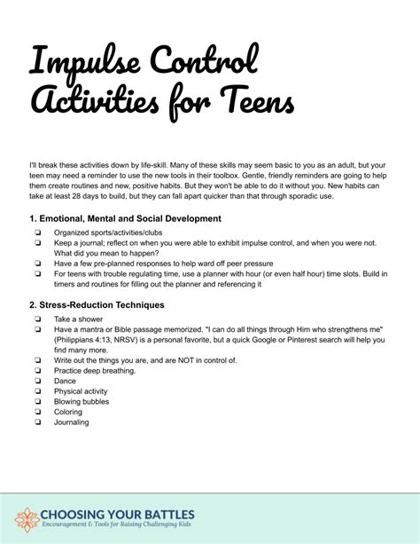 Read Online Impulse Control Activities With Adolescents Epub